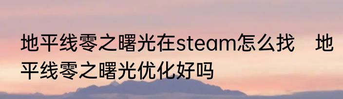 地平线零之曙光在steam怎么找 地平线零之曙光优化好吗
