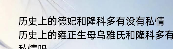 历史上的德妃和隆科多有没有私情 历史上的雍正生母乌雅氏和隆科多有私情吗