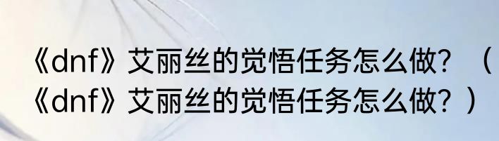 《dnf》艾丽丝的觉悟任务怎么做?(《dnf》艾丽丝的觉悟任务怎么做?)