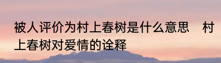 被人评价为村上春树是什么意思 村上春树对爱情的诠释