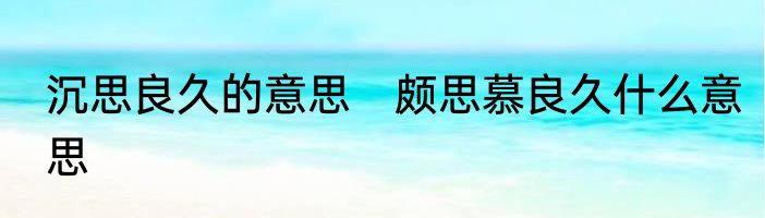 沉思良久的意思?