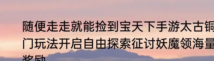 说起随便走走就能捡到宝天下手游太古铜门玩法开启自由探索征讨妖魔领海量奖励,会有不少人想要了解,那么下面来看看随便走走就能捡到宝天下手游太古铜门玩法开启自由探索征讨妖魔领海量奖励的有关内容。