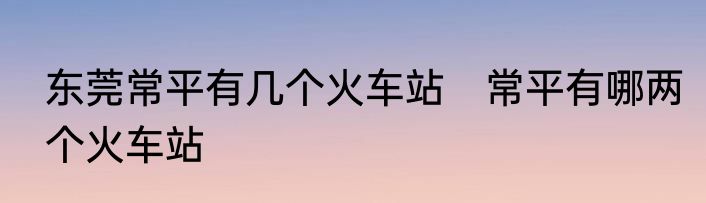 常平有三个火车站,一个是东莞东火车站,斜对面还有个常平东站是城轨城际列车,还有个常平火车站有和谐号动车