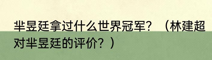 提及芈昱廷拿过什么世界冠军?(林建超对芈昱廷的评价?)的相关内容,许多人不太了解,来看看小光的介绍吧!