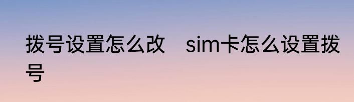 拨号设置怎么改 sim卡怎么设置拨号