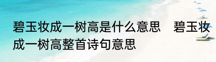 碧玉妆成一树高是什么意思 碧玉妆成一树高整首诗句意思