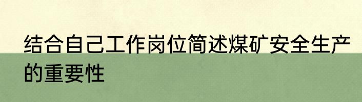 结合自己工作岗位简述煤矿安全生产的重要性?