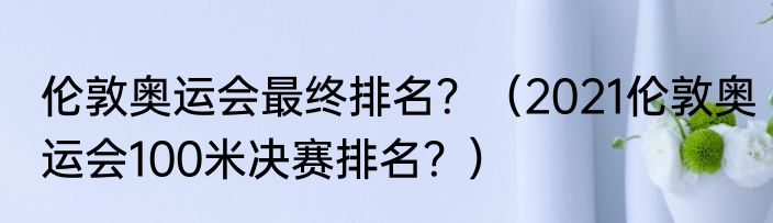 提及伦敦奥运会最终排名?(2021伦敦奥运会100米决赛排名?)的相关内容,许多人不太了解,来看看小荣的介绍吧!