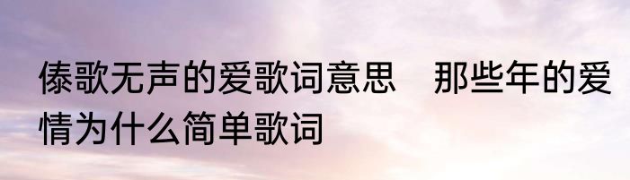 傣歌无声的爱歌词意思 那些年的爱情为什么简单歌词