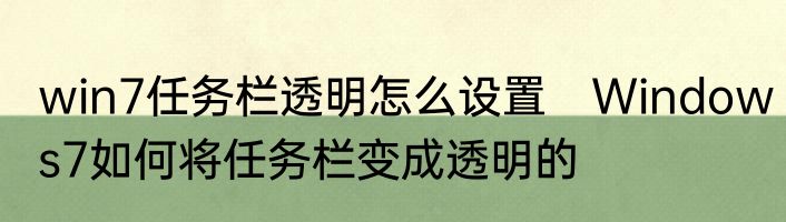 win7任务栏透明怎么设置 Windows7如何将任务栏变成透明的