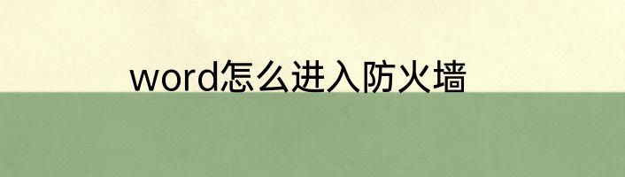 word怎么进入防火墙