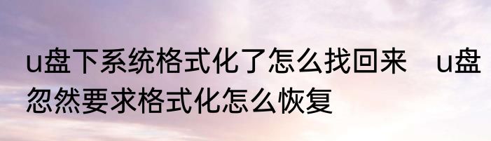u盘下系统格式化了怎么找回来 u盘忽然要求格式化怎么恢复