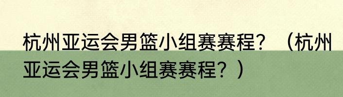 杭州亚运会男篮小组赛赛程?(杭州亚运会男篮小组赛赛程?)