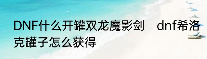DNF什么开罐双龙魔影剑 dnf希洛克罐子怎么获得