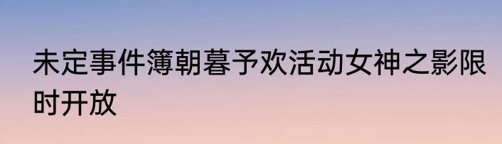说起未定事件簿朝暮予欢活动女神之影限时开放,会有不少人想要了解,那么下面来看看未定事件簿朝暮予欢活动女神之影限时开放的有关内容。