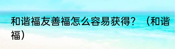 和谐福友善福怎么容易获得?(和谐福)