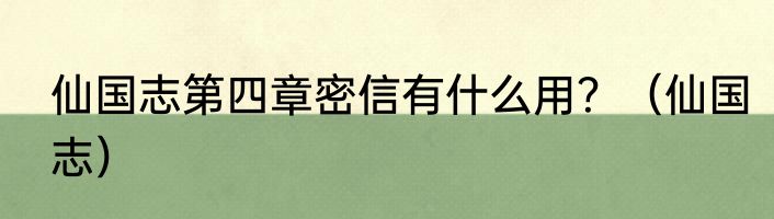 此外,《仙国志第四章密信》也充当了游戏中的任务提示,它可以帮助玩家更好地理解游戏的故事情节,并能更好地感受游戏的氛围。