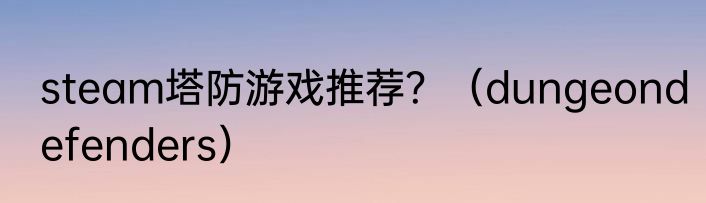 steam塔防游戏推荐?