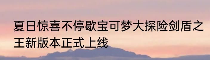 说起夏日惊喜不停歇宝可梦大探险剑盾之王新版本正式上线,会有不少人想要了解,那么下面来看看夏日惊喜不停歇宝可梦大探险剑盾之王新版本正式上线的有关内容。