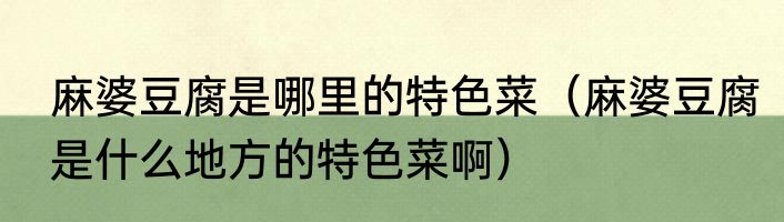 麻婆豆腐是哪里的特色菜(麻婆豆腐是什么地方的特色菜啊)
