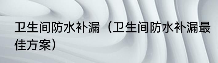 卫生间防水补漏(卫生间防水补漏最佳方案)