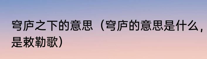 穹庐之下的意思(穹庐的意思是什么,是敕勒歌)