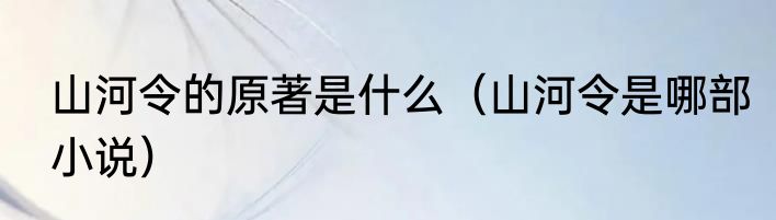 山河令的原著是什么(山河令是哪部小说)