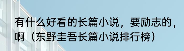 有什么好看的长篇小说,要励志的,啊(东野圭吾长篇小说排行榜)