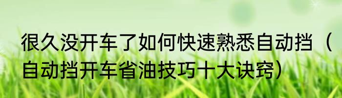 很久没开车了如何快速熟悉自动挡(自动挡开车省油技巧十大诀窍)