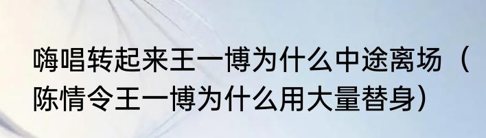 嗨唱转起来王一博为什么中途离场(陈情令王一博为什么用大量替身)