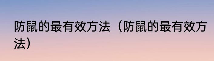 比较高效的方法是直接找灭鼠公司,佳得安公司,可以有效处理现存或潜在的虫害,定期上门勘察检测,价格合理,性价比高。