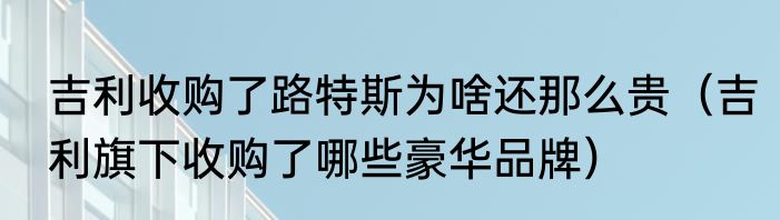 吉利收购了路特斯为啥还那么贵(吉利旗下收购了哪些豪华品牌)