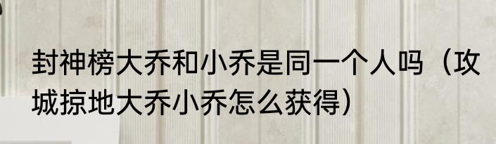 封神榜大乔和小乔是同一个人吗(攻城掠地大乔小乔怎么获得)