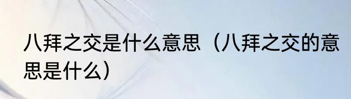 八拜之交是指古代的一种传统友谊形式,指兄弟之间相互敬重、感恩、互助的友谊。