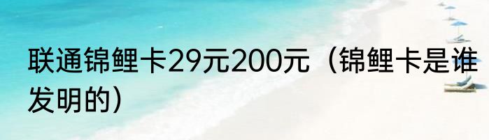 联通锦鲤卡29元200元(锦鲤卡是谁发明的)