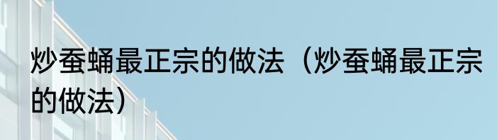 炒蚕蛹最正宗的做法(炒蚕蛹最正宗的做法)