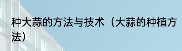 种大蒜的方法与技术(大蒜的种植方法)