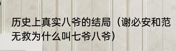 历史上真实八爷的结局(谢必安和范无救为什么叫七爷八爷)