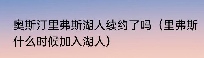奥斯汀里弗斯湖人续约了吗(里弗斯什么时候加入湖人)