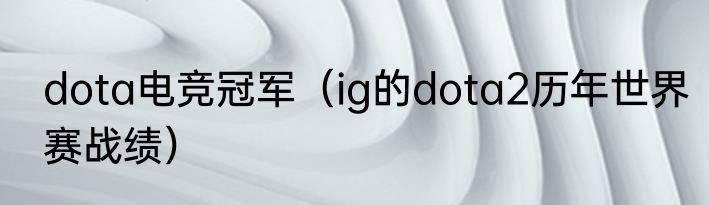 dota电竞冠军(ig的dota2历年世界赛战绩)