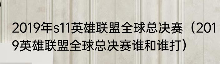 2019年s11英雄联盟全球总决赛(2019英雄联盟全球总决赛谁和谁打)