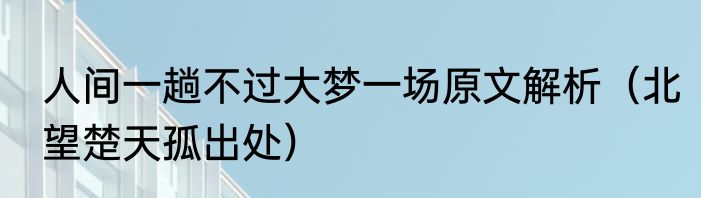 人间一趟不过大梦一场原文解析(北望楚天孤出处)
