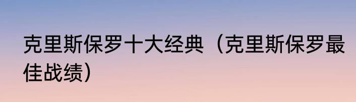 克里斯保罗十大经典(克里斯保罗最佳战绩)