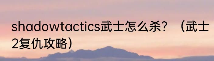 shadowtactics武士怎么杀?(武士2复仇攻略)