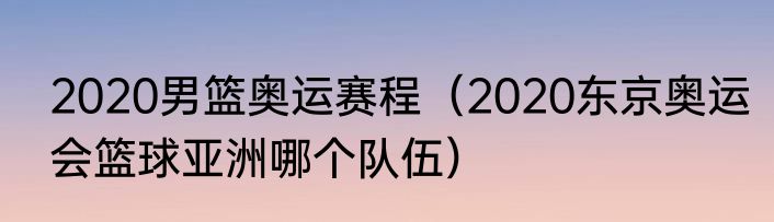 2020男篮奥运赛程(2020东京奥运会篮球亚洲哪个队伍)