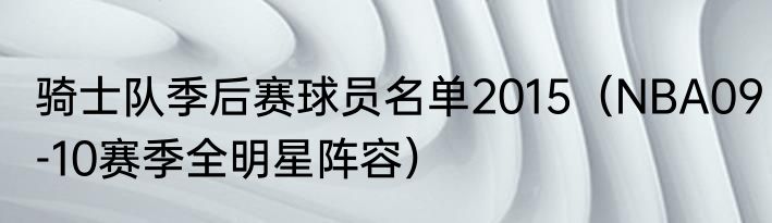 骑士队季后赛球员名单2015(NBA09-10赛季全明星阵容)
