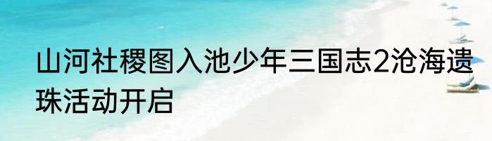 说起山河社稷图入池少年三国志2沧海遗珠活动开启,会有不少人想要了解,那么下面来看看山河社稷图入池少年三国志2沧海遗珠活动开启的有关内容。