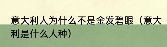 意大利人为什么不是金发碧眼(意大利是什么人种)