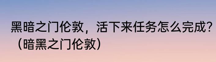 黑暗之门伦敦,活下来任务怎么完成?(暗黑之门伦敦)
