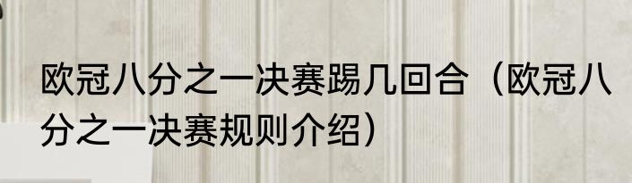 欧冠八分之一决赛踢几回合(欧冠八分之一决赛规则介绍)